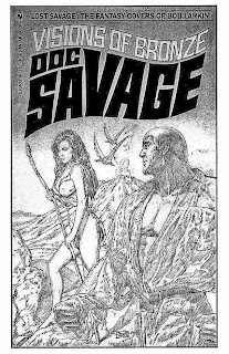Terry Allen had created an idea for a series of pencils drawings that Bob did called Visions of Bronze. The idea was to pair up Doc Savage with other favorite characters. These characters ran the gamut from the 50 ft.Woman all the way to Santa Claus. I talked with Bob one day and he said he was really running out of character ideas. I suggested that he do one or two with Raquel Welch, especially from One Million Years BC. He was entirely agreeable to that!